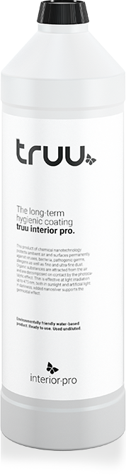 Σε κλειστούς χώρους, η συγκέντρωση σωματιδίων είναι έως 5 φορές υψηλότερη από ό,τι στον αέρα του εξωτερικού περιβάλλοντος. Οι ιοί, τα βακτήρια και άλλα πολυανθεκτικά μικρόβια, όπως επίσης τα αλλεργιογόνα και τα εξαιρετικά λεπτά σωματίδια σκόνης δεν είναι ορατά με γυμνό μάτι. Ωστόσο, εάν εισέλθουν στο σώμα μας, μπορούν να γίνουν επικίνδυνα για την υγεία μας. Οι φωτοκαταλυτικές αποτελεσματικές επιστρώσεις truu air διασφαλίζουν ότι οι βλαβερές ουσίες δεν φτάνουν τόσο μακριά. Τα αιωρούμενα σωματίδια, συμπεριλαμβανομένων των ενδοτοξινών, έλκονται και καθίστανται αβλαβή όταν έρχονται σε επαφή με μια επικαλυμμένη επιφάνεια. Ειδικά, άτομα με προϋπάρχουσα ευαισθησία σε αυτές τις ουσίες, άτομα με ιστορικό παθήσεων ή άτομα των οποίων το ανοσοποιητικό σύστημα είναι εξασθενημένο επωφελούνται από τον υγιεινά καθαρό, φυσικό αέρα – τον truu original air.
